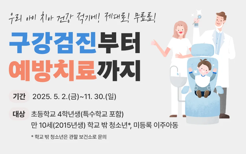 - 필요 시 치아 홈 메우기, 치석 제거, 파노라마 촬영 등